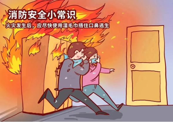简易防护,匍匐弯腰逃生时要防止烟雾中毒,可采用毛巾、口罩等蒙鼻,匍匐或弯腰撤离的办法,穿过烟火封锁区,应佩戴防毒面具、头盔等护具,如果没有这些护具,可向头部、身上浇冷水再逃出去。