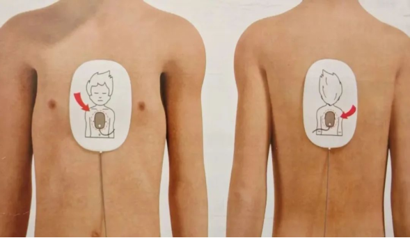 7、粘贴电极片位置如遇到装有植入式起搏器,则应尽量避开;如果患者胸部贴有药贴,则应撕掉药贴并擦拭干净皮肤后,再贴电极片。