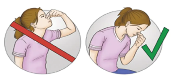身体微微前倾,用手指捏住鼻翼两侧(鼻孔上方约1厘米处),持续按压5-10分钟,期间用嘴呼吸;