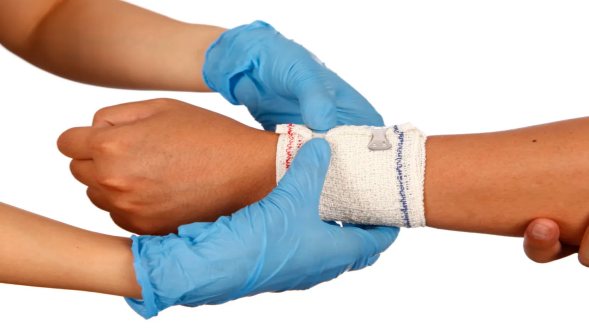 环形包扎法:用于腕部、踝部、颈部等身体粗细相等部位伤口的包扎。
