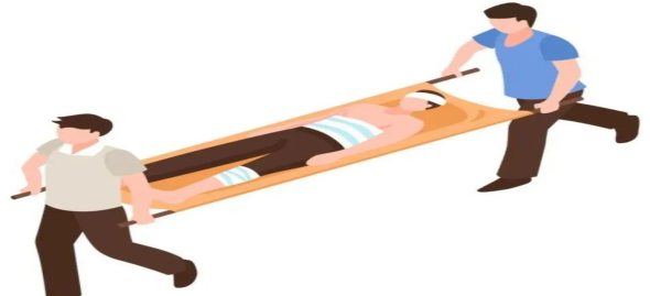 2. 双人拉车法:一个人站在伤员头部两手伸于其腋下,将其抱入怀中;另一人站在伤员的两腿之间,抱住其双腿,两人步调一致将伤员抬起运走。