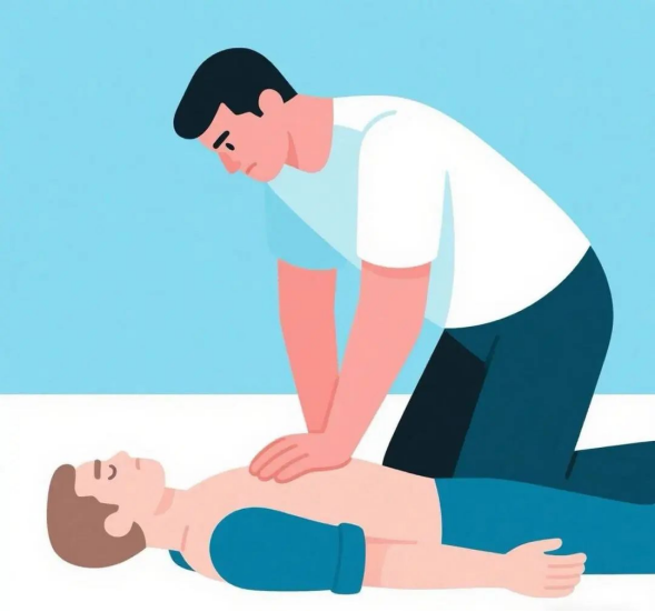 (2)心脏按压。一旦发现伤者心脏停跳,就需要按照“心脏按压 30 次—开放气道—人工呼吸 2 次"的步骤反复操作进行心肺复苏,按压具体方法如下: