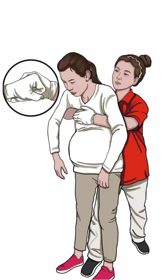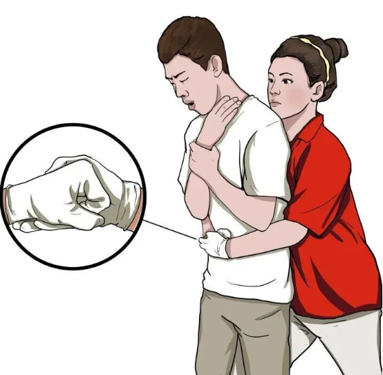 如果身边没有人可以提供帮助,则自己一只手握拳,握拳手的拇指侧紧抵自己脐上两横指处,另一只手紧握此拳,弯腰,用力快速向内、向上冲击。