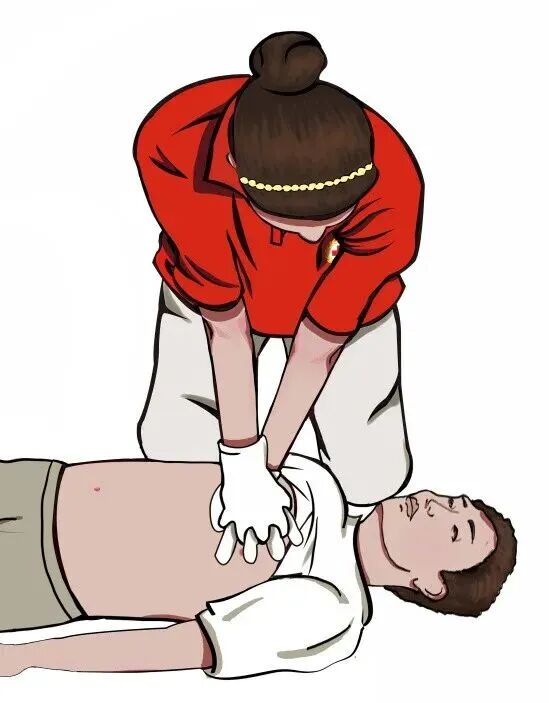 患者一旦失去意识,立即将其放平在地上,确认已拨打120,实施心肺复苏(打开气道—人工呼吸—胸外按压)。