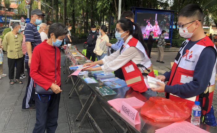 12月1日,市红十字会与州、市防艾成员单位,在孔雀湖广场开展2022年“世界艾滋病日”宣传活动。