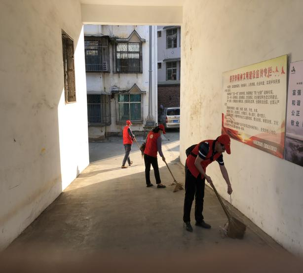 在办公区,单位志愿者们手拿扫把、垃圾袋等清洁工具,对办公区和街道落叶等垃圾进行清扫,经过大家的共同努力,办公环境卫生面貌焕然一新。