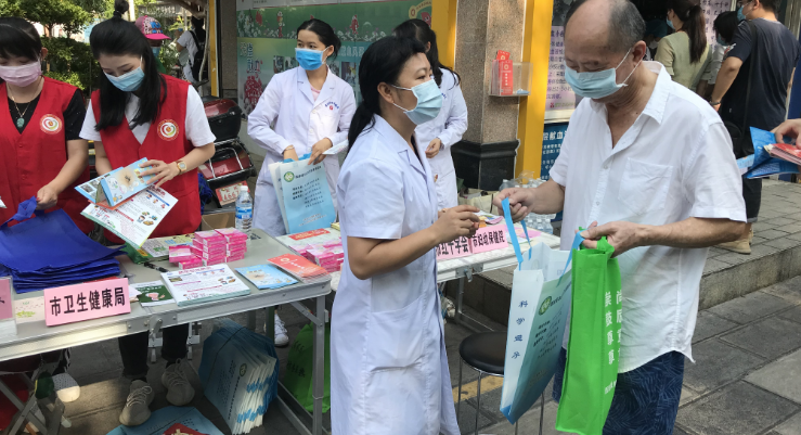 一是向市民们发放急救、防灾减灾、无偿献血、捐献造血干细胞、器官捐献、新冠肺炎防治、妇幼保健、健康扶贫、扫黑除恶、宪法、创文明城市、妇女儿童维权等宣传资料,并向市民及参与活动志愿者发放环保袋、爱心口红和避孕套。