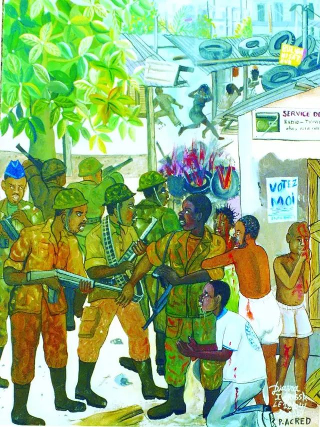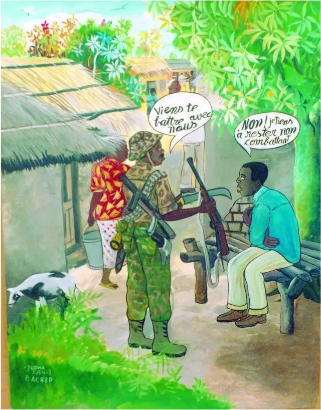 必须强调的是这些画作来自科特迪瓦的街头儿童。在科特迪瓦红十字会的帮助下,他们发挥自己的绘画天赋,完成了这些精彩的作品。令人唏嘘的是很多画面源自他们的亲身经历。