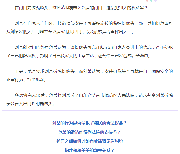 【普法强基】家门口安装摄像头拍到邻居家,侵权吗?