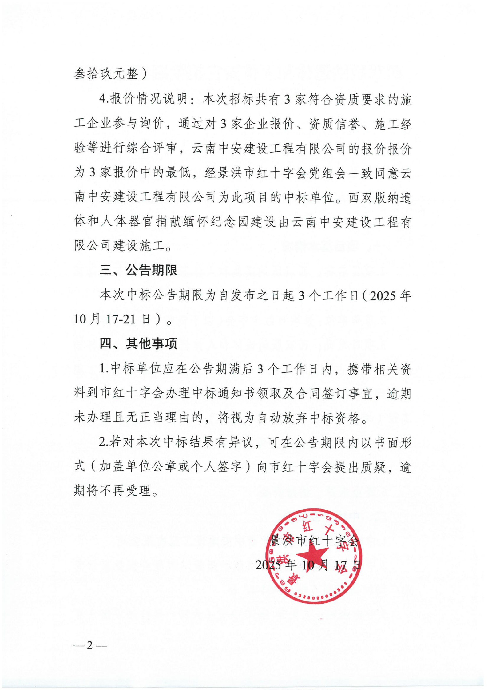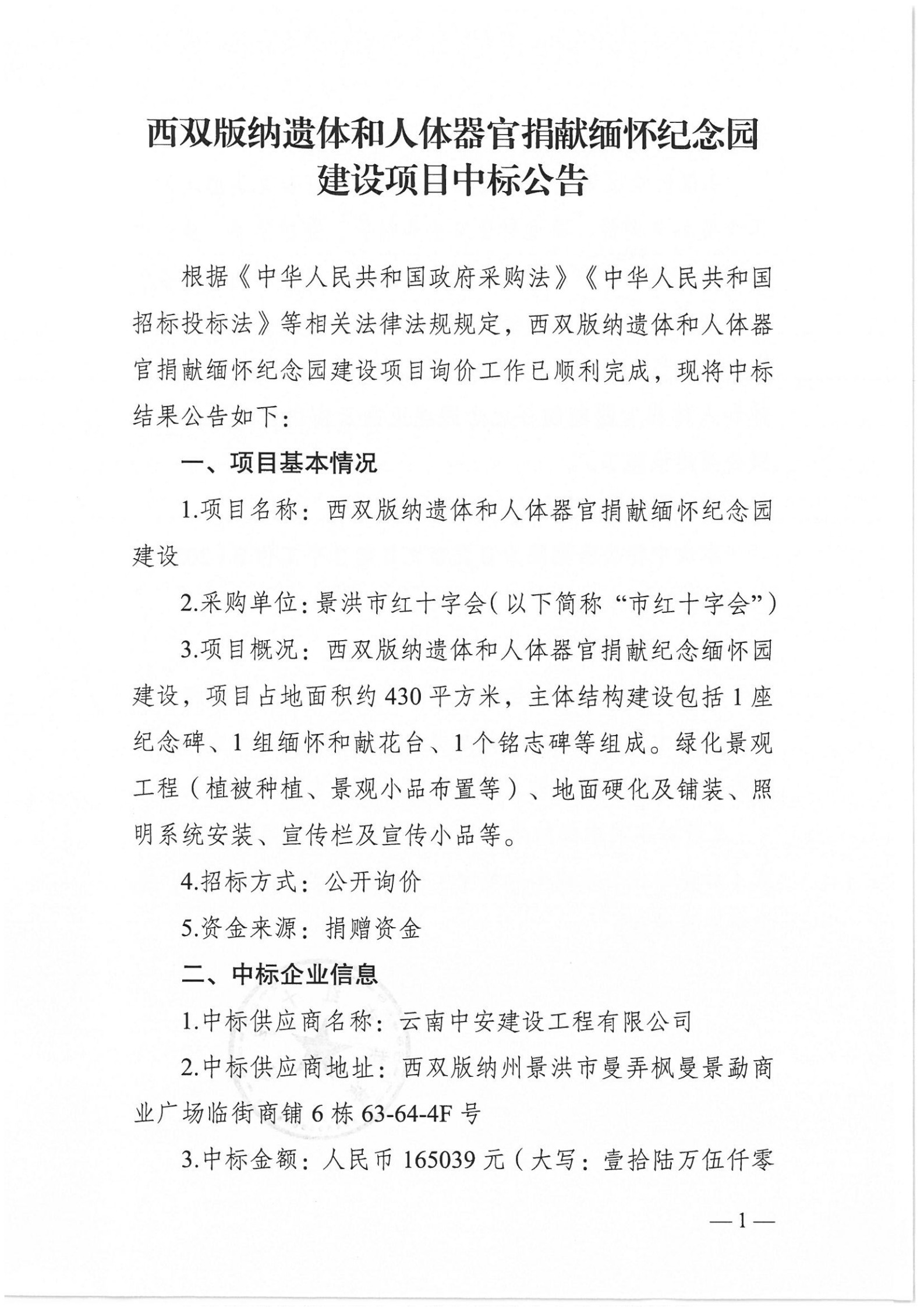西双版纳遗体和人体器官捐献缅怀纪念园建设项目中标公告