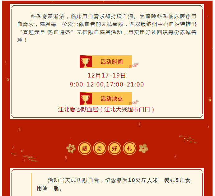 12月17-19日江北爱心献血屋无偿献血活动通知 喜迎元旦,热血暖冬!邀您共赴爱心之约