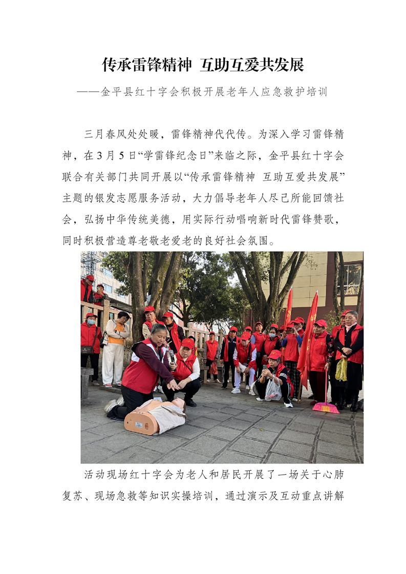 传承雷锋精神 互助互爱共发展——金平县红十字会积极开展老年人应急救护培训