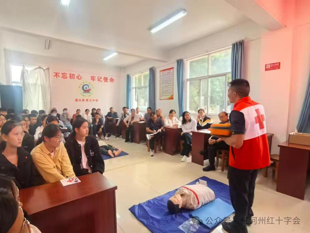 为提升师生的安全意识和应急处理能力,10月15日,建水县红十字会到青龙中学开展应急救护知识普及培训,学校40余名师生参加培训。