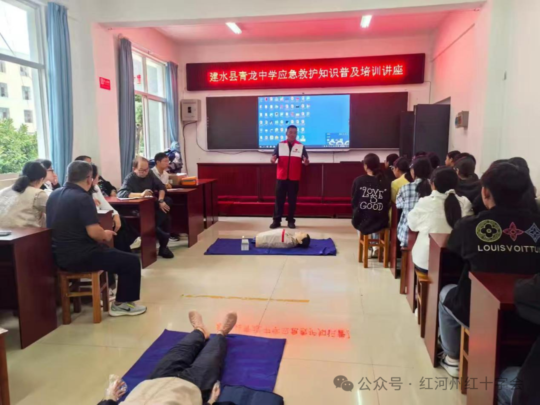 为提升师生的安全意识和应急处理能力,10月15日,建水县红十字会到青龙中学开展应急救护知识普及培训,学校40余名师生参加培训。