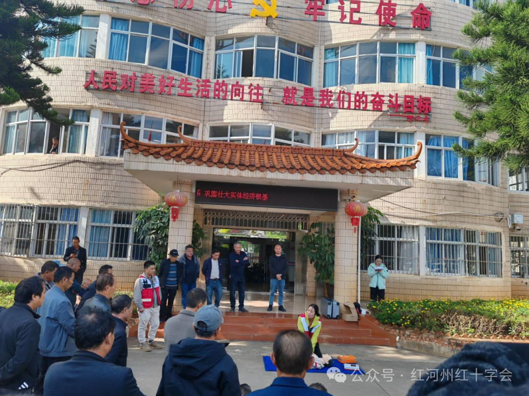 本次培训以应急知识为核心,采用环环相扣的递进式教学模式。在地震相关知识讲解结束后,县红十字会讲师通过理论授课、现场模拟实操相结合的方式,聚焦AED与CPR协同应用,详细传授地震后针对无自主呼吸、无心跳伤员的心肺复苏急救技能。
