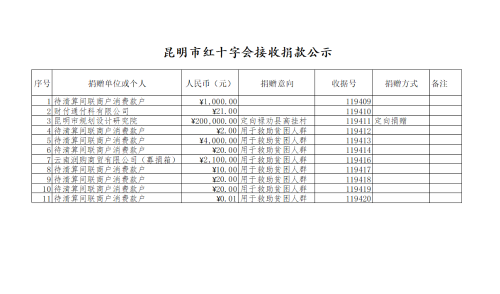 昆明市红十字会2019年下半年人道救助基金救助人员通报