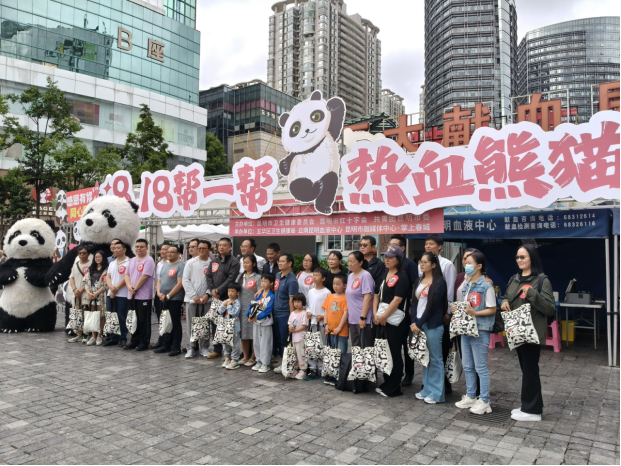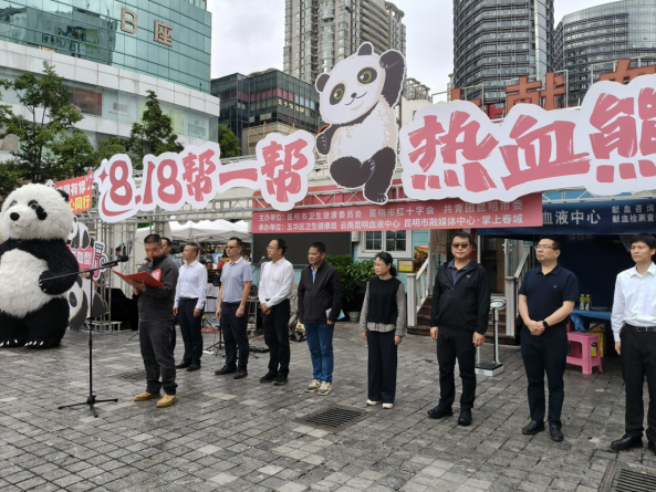 为弘扬“人道、博爱、奉献”的红十字精神,助力保障稀有血型患者临床供血需求,2025年8月17日,昆明市红十字会参与由昆明市卫生健康委员会、共青团昆明市委主办的2025年昆明市“8.18帮一帮·热血熊猫侠”稀有血型公益宣传活动,在南屏步行街广场掀起爱心热潮。