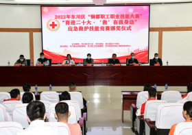 为进一步提升职工职业技能素质,推进东川应急救援队伍建设,引导职工主动服务和融入经济发展新常态,建功立业,庆祝党的“二十大”胜利召开。2022年10月28日上午,东川区红十字会在应急救护培训基地举办了2022年东川区“铜都职工职业技能大赛”应急救护技能竞赛。