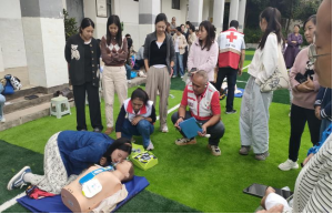 培训中,红十字会培训师资为参训教师详细讲解了红十字运动的基本知识,“三救三献”常识,围绕心肺复苏、AED使用、气道异物梗阻处理及创伤救护(止血、包扎、固定等)核心内容,结合案例讲解理论知识,同时借助教学模型开展实操演示,对按压姿势、操作步骤等细节进行精准指导。参训教师全程积极参与互动,在讲师的实时纠错与点拨下,扎实完成心肺复苏等实操练习,确保急救操作规范到位。