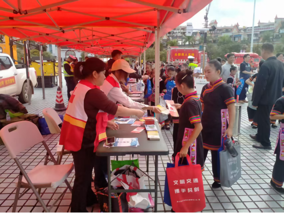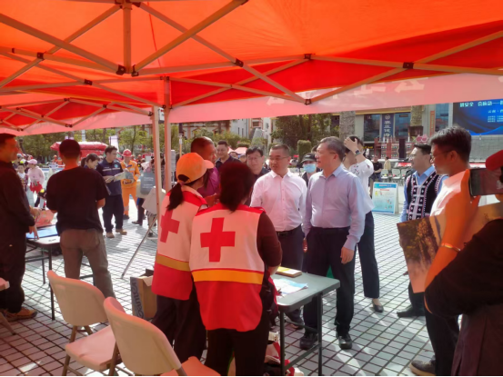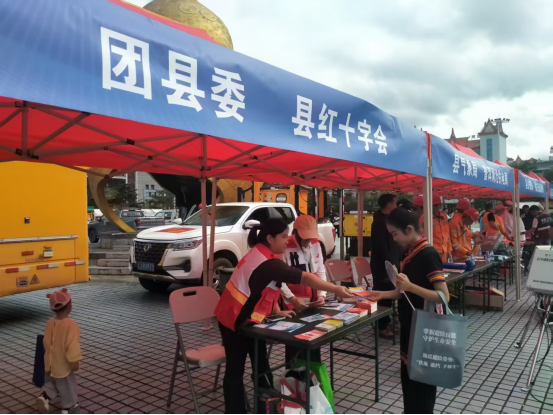 县十字会以现场科普宣传,设置展台发放宣传手册,支持防灾减灾协作。