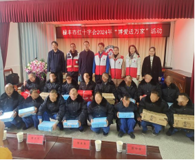 1月25日,禄丰市红十字会、禄丰市残疾人联合会赴禄丰鸿康阳光医院开展2024年“博爱送万家,助残显真情”主题党日活动。此次主题党日活动,市红十字会向禄丰鸿康阳光医院捐赠消毒液96瓶、消毒凝胶192瓶、消毒湿巾24件、保暖床单120件、食品数件,总价值18387元,为阳光医院295位患者提供了援助和关爱。