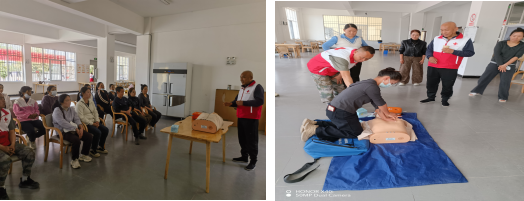 培训对象为县养老院的一线服务人员,内容紧密结合养老服务实际需求,涵盖了红十字运动基本知识、应急救护概论、老年人常见急症处理、心肺复苏(CPR)与自动体外除颤器(AED)操作、创伤救护技能(止血、包扎、固定、搬运)以及针对老年人特点的心理支持与护理知识等多个方面。培训采用理论讲解、实操演示与模拟演练相结合的方式,确保学员们能够听得懂、学得会、用得上。