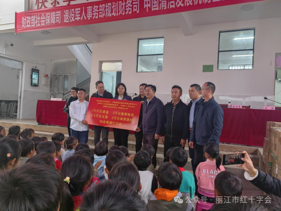 11月6日下午,调研组到永胜县松坪乡下喇嘛村小学开展调研活动,并联合财政部社会保障司、中国清洁发展机制基金管理中心、退役军人事务部规划财务司等向永胜县松坪乡下啦嘛村小学捐赠70万元资金、3万元御寒物资、2.5万元文具、2万元体育器材、30台电脑打印机。