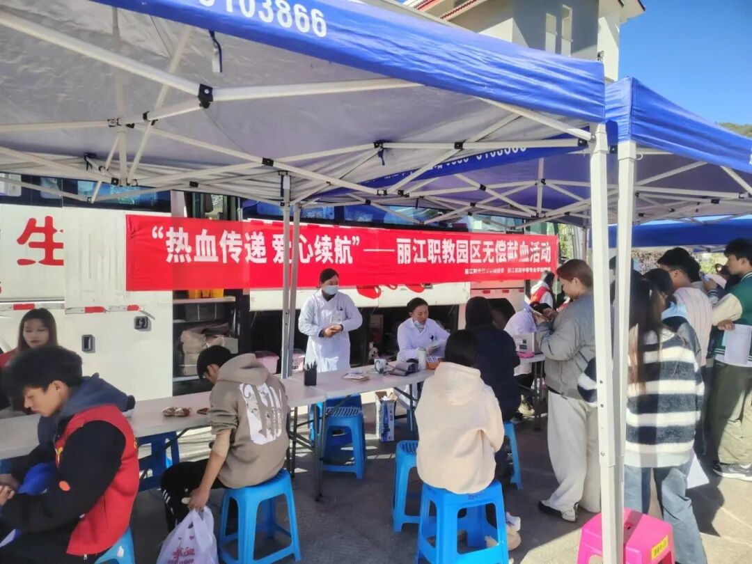 11月13日,丽江市中心血站联合丽江职教园区开展了“热血传递 爱心续航”无偿献血活动。