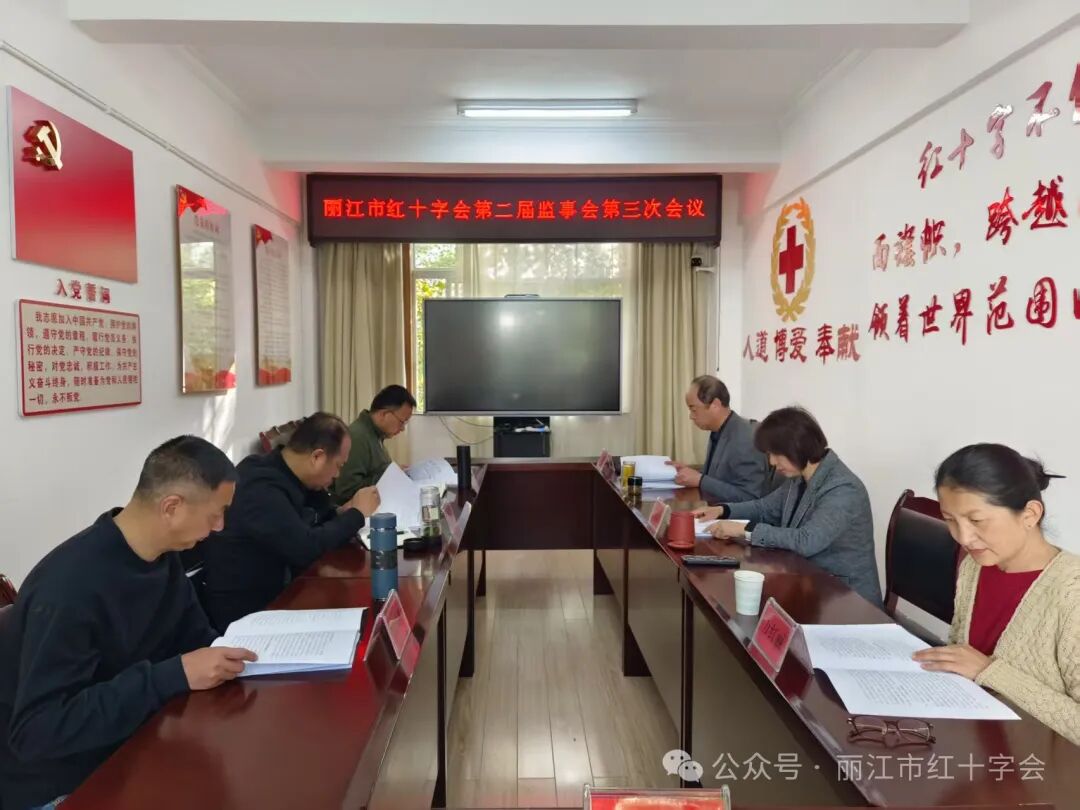 会议传达学习了全国红十字会监事会工作会议精神,审议通过了关于更换监事的议案,征求了《丽江市红十字会理事会2024年度工作报告(草案)》、《丽江市红十字会2024年度财务收支情况报告(草案)》意见建议。