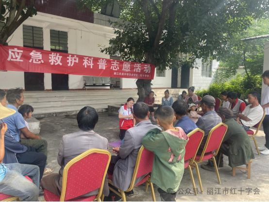 随后,急救科普宣传环节有序展开。丽江民族中等专业学校红十字应急救护师资刘丽和段玉兰两位老师给村民讲解了常见的急救知识,针对心肺复苏和海姆立克急救法这两项关键救命技能,两位老师进行了现场示范讲解,从操作步骤、动作要领到注意事项逐一说明,帮助村民直观理解和掌握,指导村民进行了操作练习,通过学习村民们提升应对突发状况的自救互救能力。活动结束后向村民发放了《应急救护宣传手册》、《伤员急救手册》、《心理援救手册》,手册内容通俗易懂,详细介绍了常见急症处理、意外伤害应对等基础急救知识和心理健康知识。