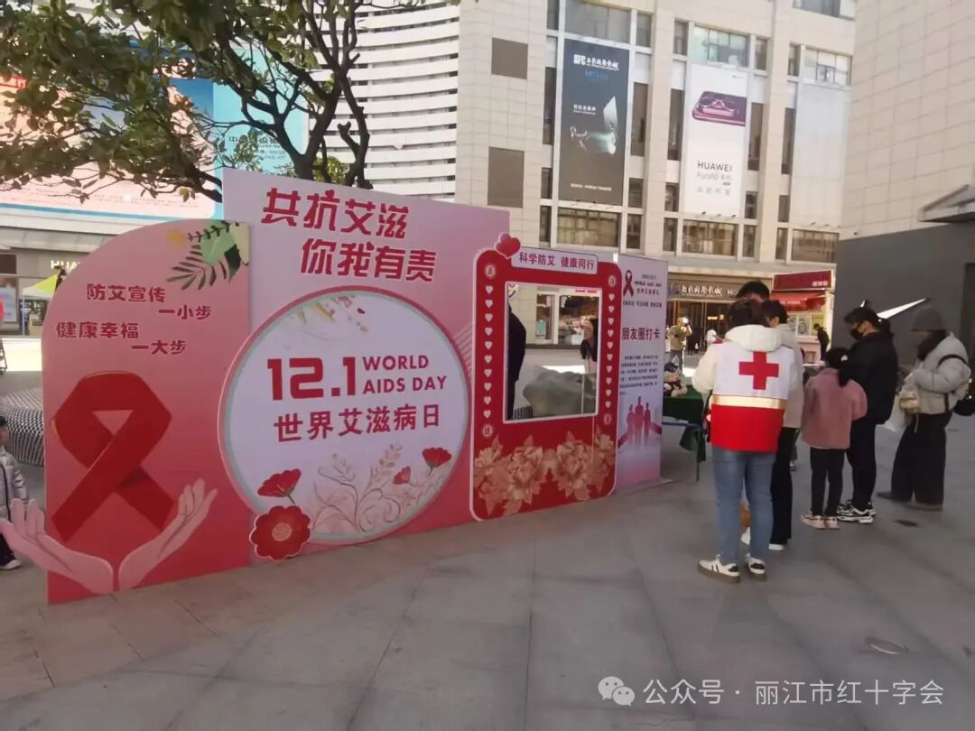 每年的12月1日是“世界艾滋病日”。为深入贯彻落实《云南省艾滋病防治条例》及省、市关于艾滋病防治工作的安排部署,丽江市红十字会于11月29日组织工作人员与志愿者,积极参与在古城区祥和商业广场举办的丽江市第38个“世界艾滋病日”主题宣传活动。本次活动以“社会共治,守正创新,终结艾滋”为主题,旨在通过广泛的社会动员和多元化的宣传方式,提升公众对艾滋病的认知水平,倡导健康生活方式,消除社会歧视,凝聚各方力量,共同推进艾滋病防治工作。