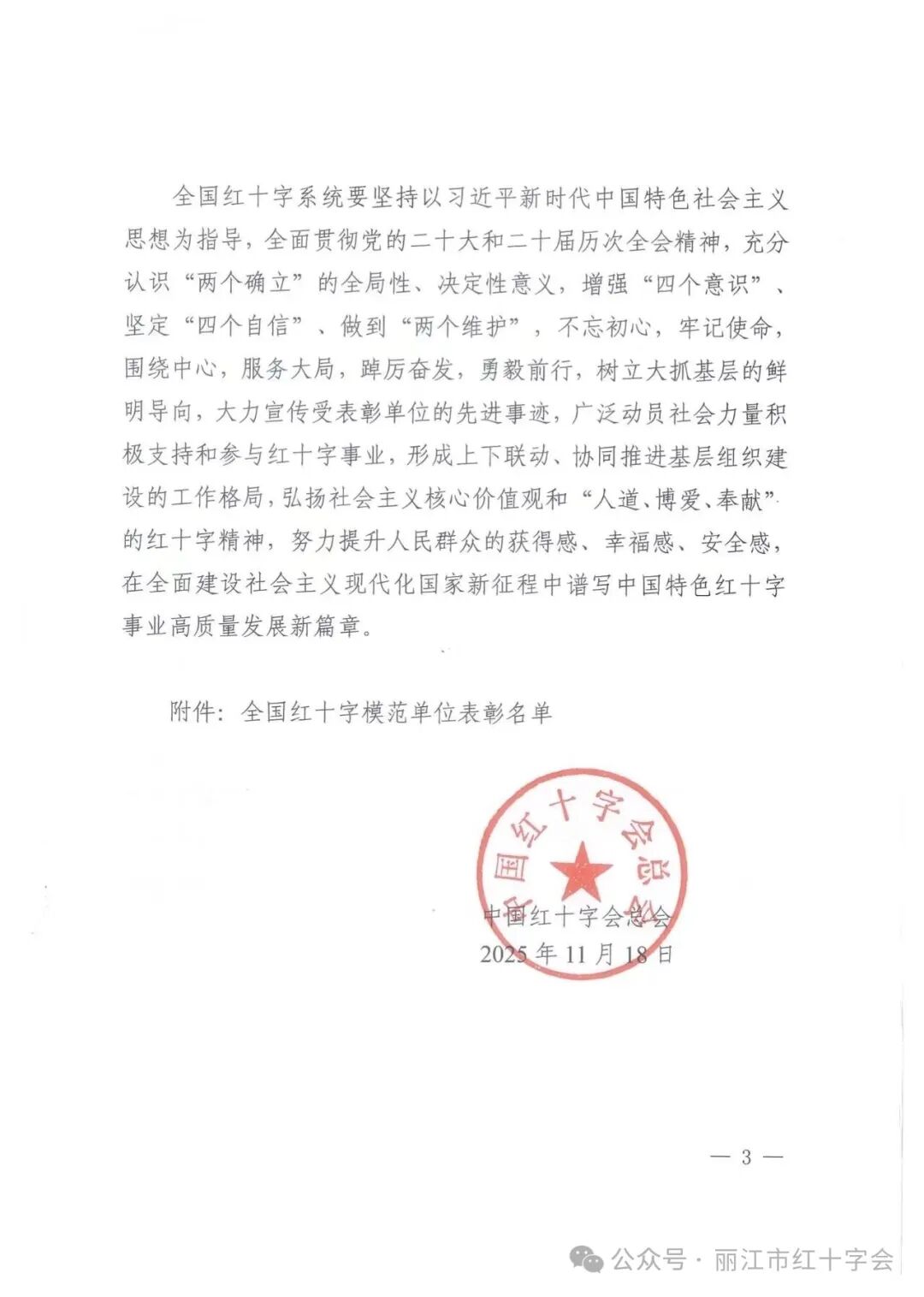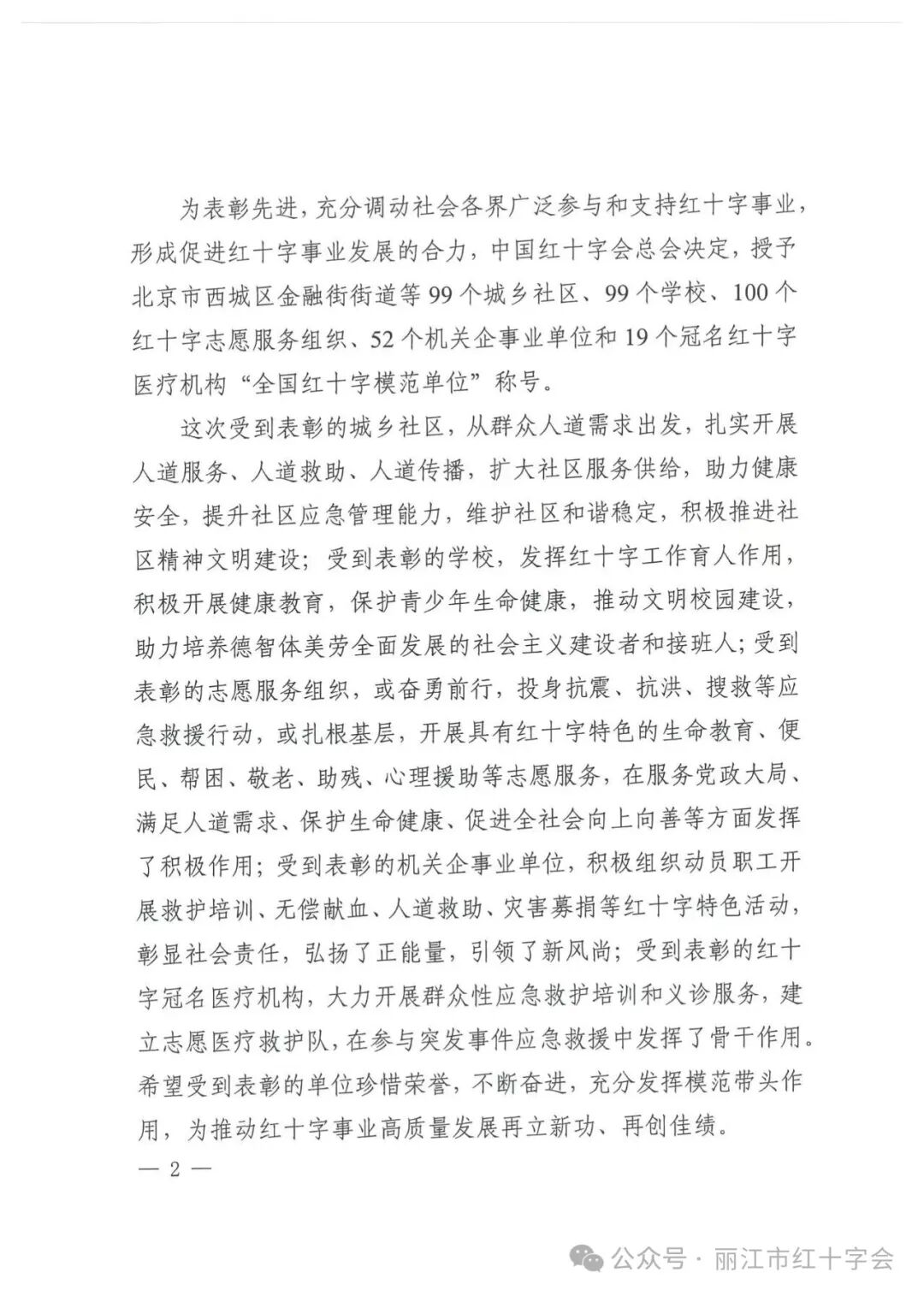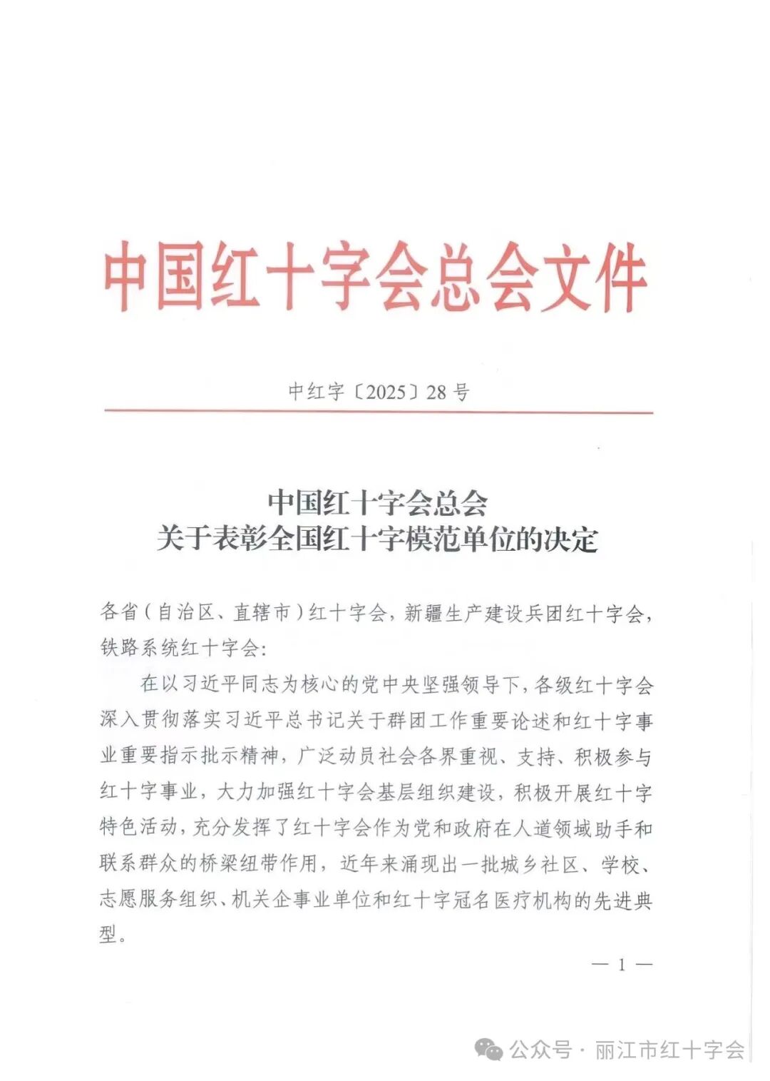 近日,中国红十字会总会印发《关于表彰全国红十字模范单位的决定》,丽江市红十字会山地救援志愿服务队凭借扎实的专业能力、规范的组织管理和突出的救援实绩,成功获评 “全国红十字模范单位” 称号,成为丽江人道救援领域的闪亮名片!