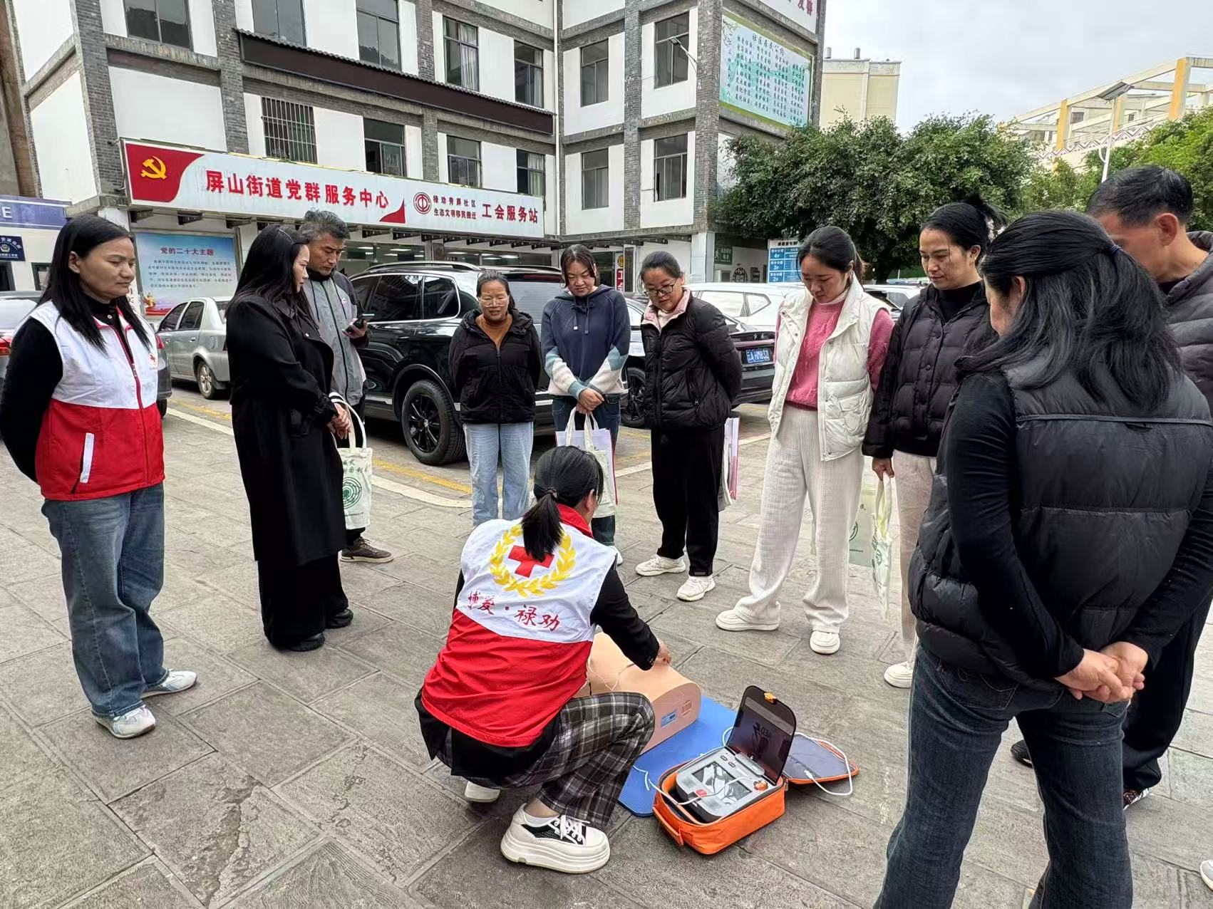 深入社区,普及知识与技能。11月6日,县红十字会联合县应急管理局、县防震减灾局,走进屏山街道秀屏社区。通过设立咨询台、发放《防震减灾知识手册》、《家庭应急准备指南》、红十字应急救护宣传折页等方式,广泛宣传地震知识。禄劝县红十字会师资现场演示并“手把手”教学心肺复苏、创伤包扎等急救技能,有效提升了社区居民的风险防范和自救互救能力。