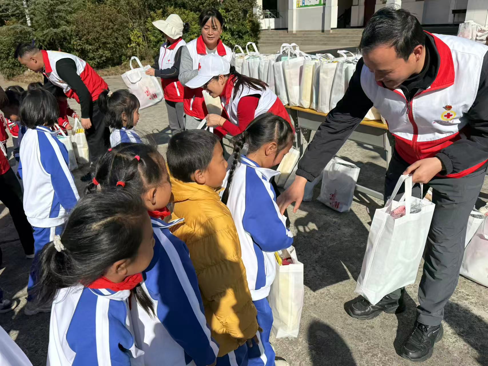 文艺表演结束后,孩子们期待已久的游园会正式开始。50米接力、拔河、跳绳、障碍跑等趣味运动项目点燃了校园热情,师生与志愿者共同参与,操场上充满了欢声笑语。活动最后,红十字会向全校44名学生发放了精心准备的“小小心愿”礼物,包括滇苗书包44个、滇苗笔记本100本、手工围巾60条、滇苗小熊60个等爱心物资。孩子们手捧礼物,脸上洋溢着幸福的笑容。