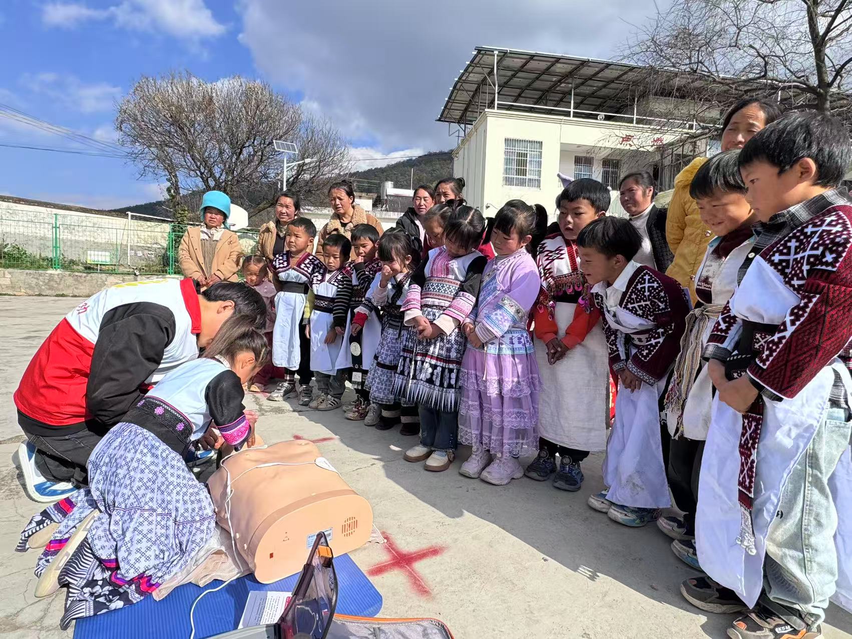 在活动现场,一床床崭新柔软的毛毯送到孩子们手中,瞬间点亮了一张张纯真的笑脸。孩子们轻抚毛毯,眼中闪烁着喜悦与感激的光芒,温暖的氛围驱散了冬日的寒意,孩子们表示将感恩关怀、努力学习、报效社会。活动期间,县红十字会同步开展应急救护培训、“三献”宣讲、志愿者活动,轻松互动交流,给师生演练自救与互救技能,为校园安全再添一道“生命防线”。培训现场气氛活跃,师生们专注聆听讲解心肺复苏、海姆立克急救法、外伤包扎等实用知识,争先恐后参与实际操作,现场学习掌握急救技能,提高防灾减灾意识,进一步巩固平安校园建设成果。学生们异口同声表示要争做红十字青少年“红衣卫士”小志愿者,将“人道·博爱·奉献”红十字精神广为传播。