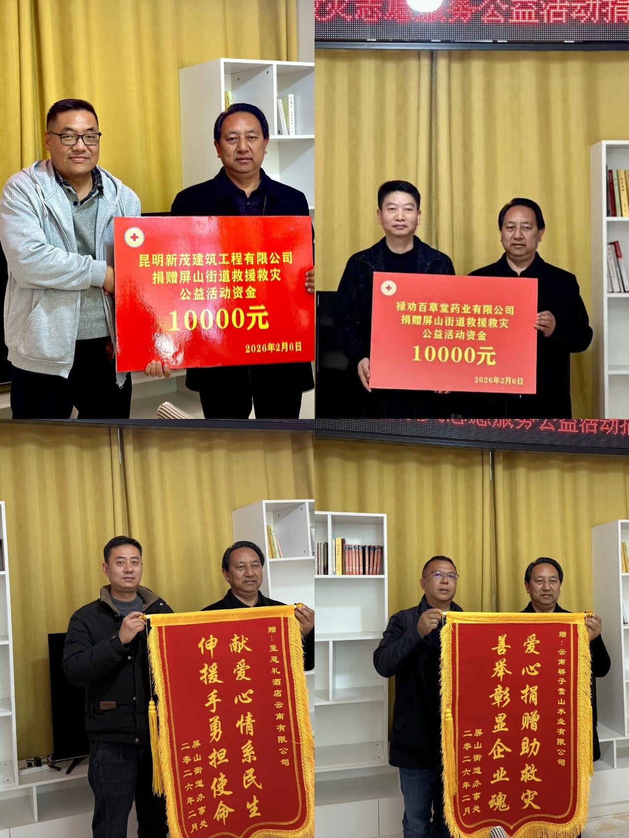 春潮涌动启新程,志愿同心筑大爱。2月6日,屏山街道召开救援救灾志愿服务公益活动捐赠座谈会,县红十字会党组书记、常务副会长马铖鑫,屏山街道党工委书记胡玉祥、屏山派出所、昆明新茂建筑工程有限公司、禄劝百草堂药业有限公司、玺恩礼酒店云南有限公司、云南轿子雪山水业有限公司等共聚一堂,围绕深化救援救灾志愿服务、提升实战能力展开深入交流。