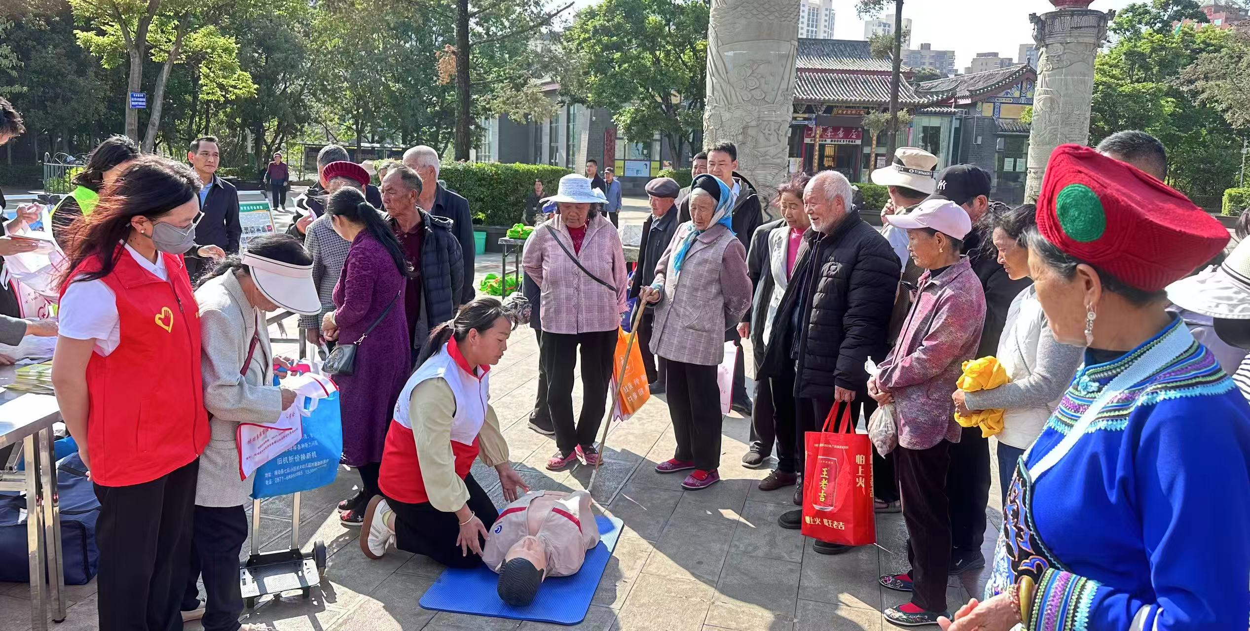 在民族广场,县红十字会应急救护师资及志愿者通过模拟人教具,为前来参与的群众详细讲解并演示了心肺复苏(CPR)、自动体外除颤器(AED)使用、气道异物梗阻处理等急救技能。讲解清晰明了,操作示范规范,吸引了大量群众驻足观看和学习,不少群众在师资指导下进行了实操练习。同时,县红十字会工作人员和志愿者积极开展“三献”知识宣传。通过发放宣传折页、现场答疑解惑等方式,向公众普及“三献”的科学知识、重要意义、捐献流程及优惠政策,消除公众疑虑,弘扬无私奉献、挽救生命的大爱精神,惠及人数达1000余人。
