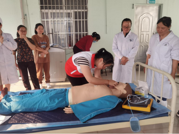 培训由具有救护师资证书的泸水市六库街道社区卫生服务中心赵智美主讲,主要以理论知识的课堂讲解和现场模拟演示相结合的方式开展,重点讲解心肺复苏、自动体外除颤仪(AED机)的使用和常见意外伤害的现场急救知识和技能。在现场模拟演练时针对心脏胸外按压、人工呼吸及AED操作步骤的关键细节进行了一一示范,并积极动员大家动手实践操作,亲身体会心肺复苏、AED操作等急救方法,大家表示此次培训通俗易懂,进一步掌握了公共场所的施救技能,培训达到预期效果。