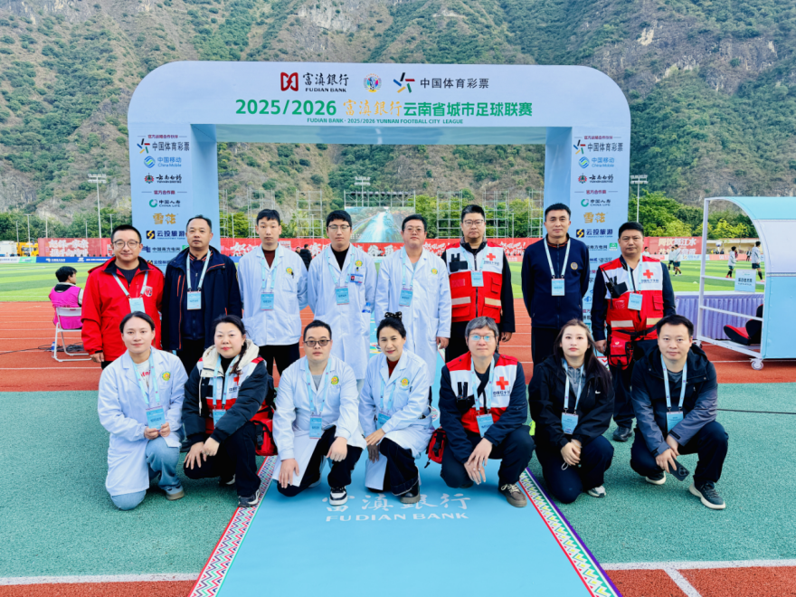 2025年12月27日19:35,2025/2026富滇银行云南省城市足球联赛“滇西德比”在泸水市六库江西民族体育场激情上演,怒江队主场迎战保山队。为保障赛事安全有序开展,守护参赛运动员与现场观众生命健康,怒江州红十字会同泸水市红十字会精心组织志愿服务队,以专业应急救护保障为这场足球盛宴筑牢安全防线。