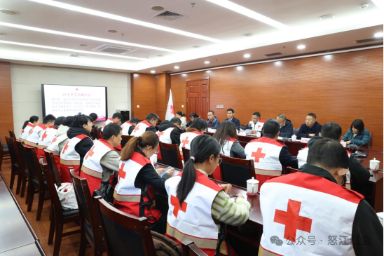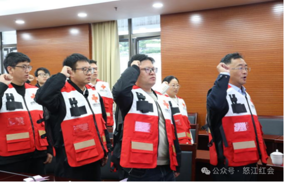 州红十字会负责人宣读了关于成立怒江州红十字救援队的通知,明确了救援队的组织架构、职能定位和建设目标。