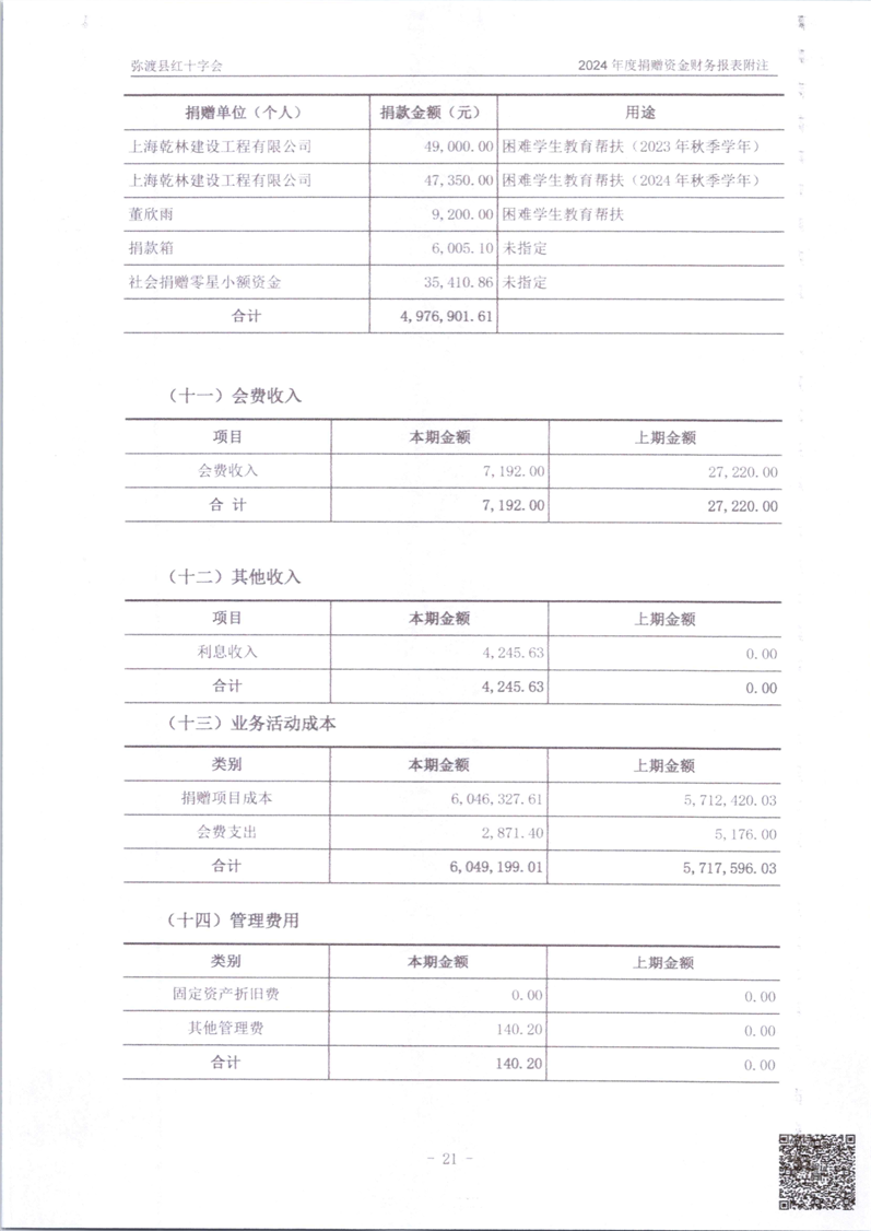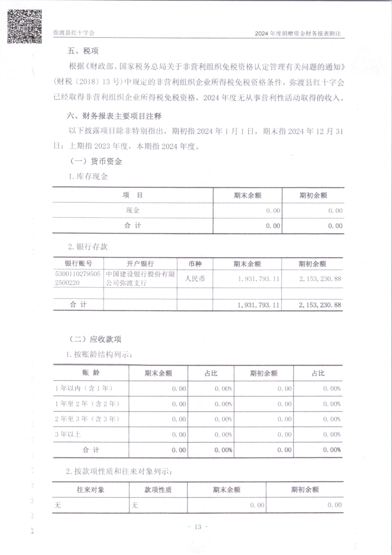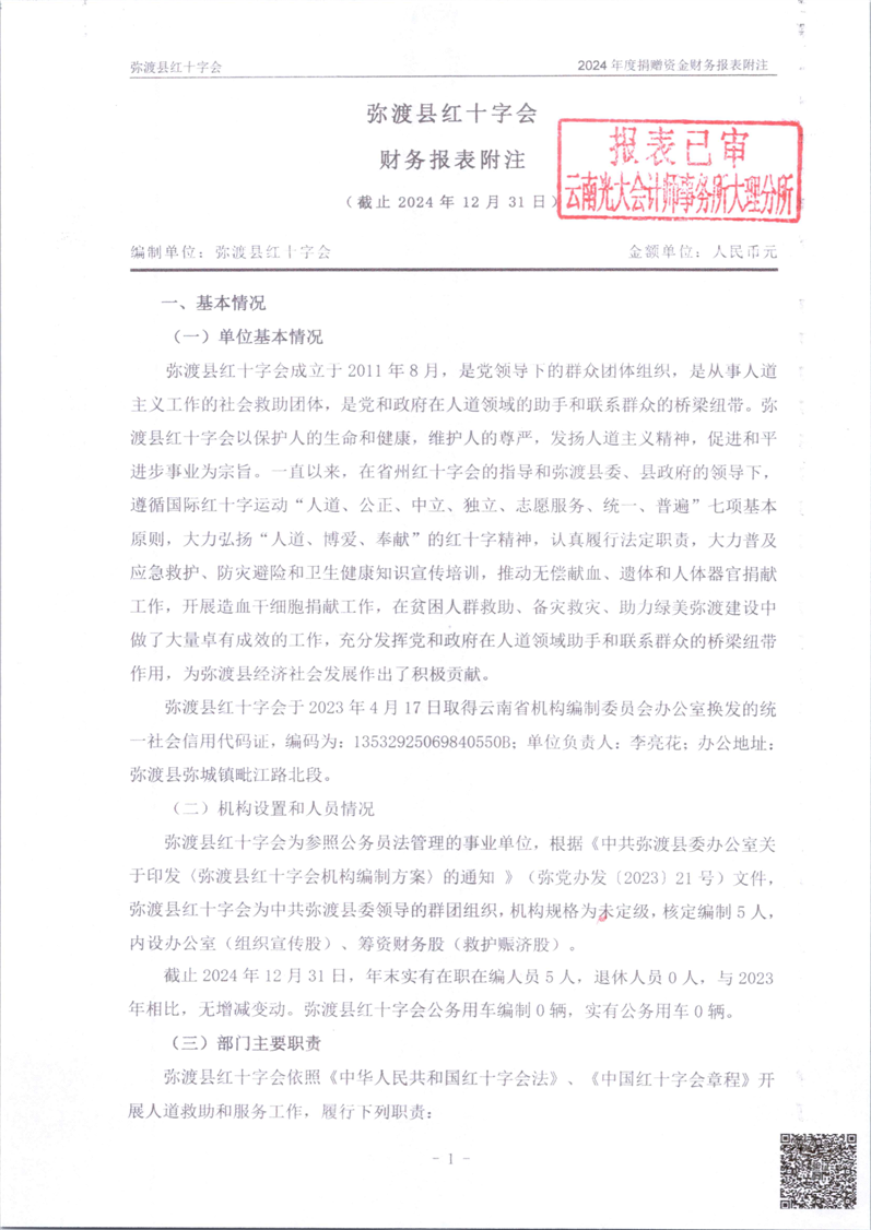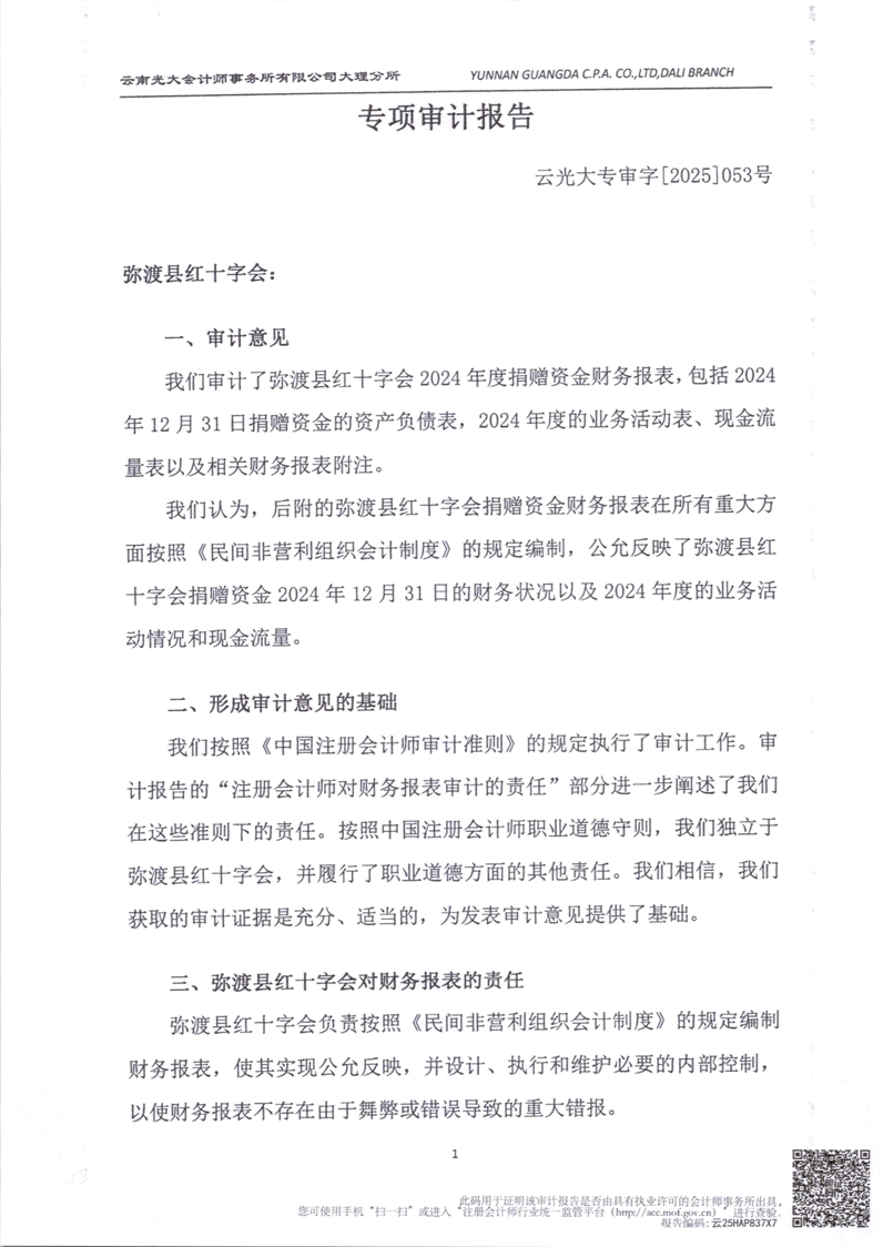 弥渡县红十字会2024年度捐赠资金财务报表专项审计报告