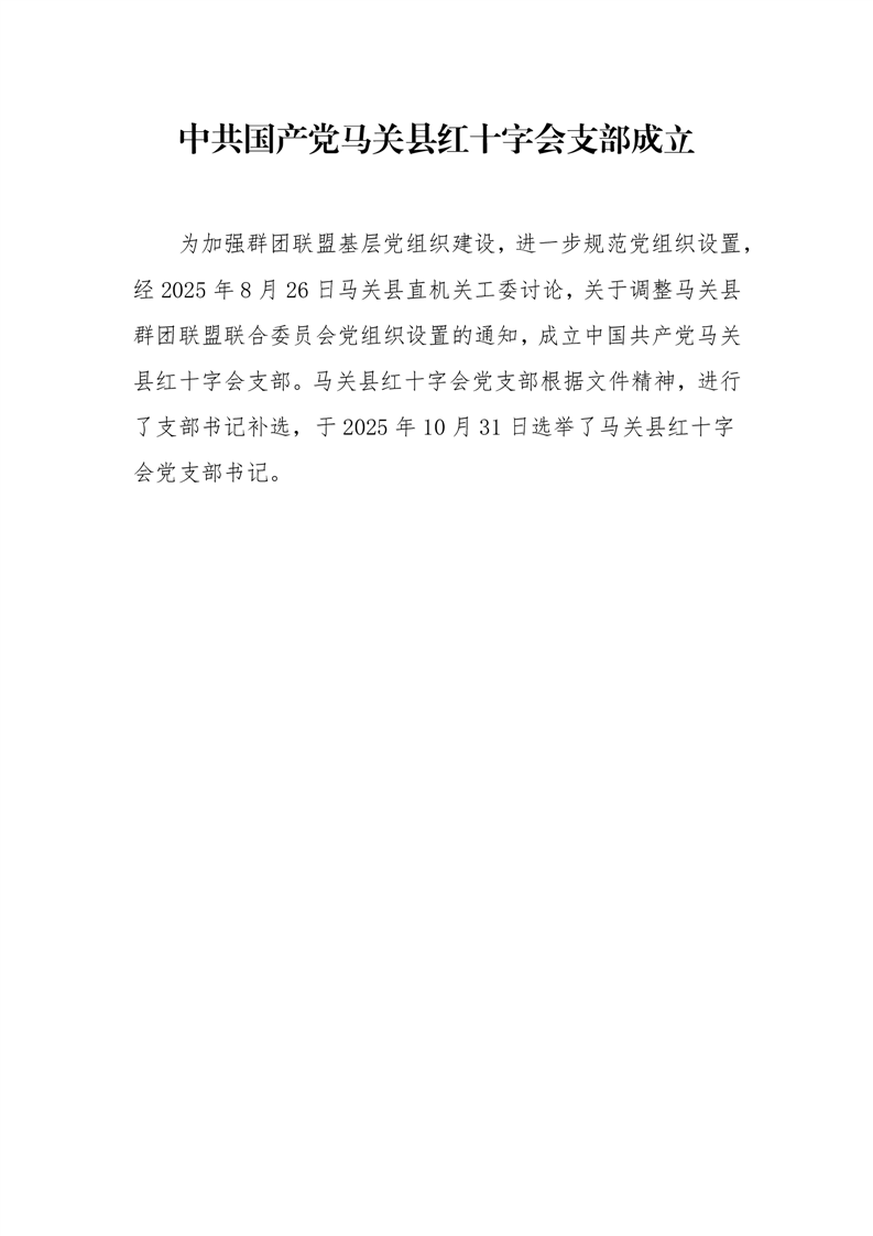 中共国产党马关县红十字会支部成立