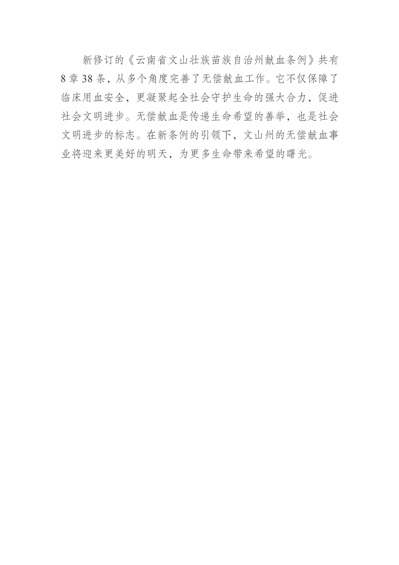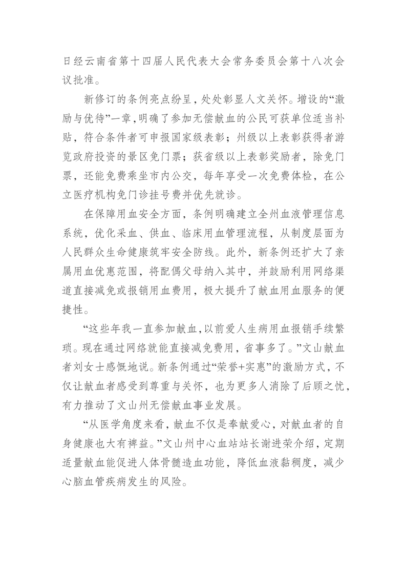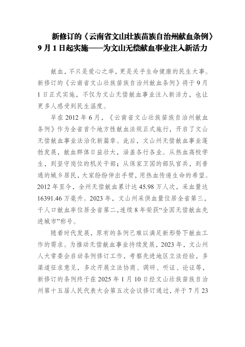 新修订的《云南省文山壮族苗族自治州献血条例》9月1日起实施