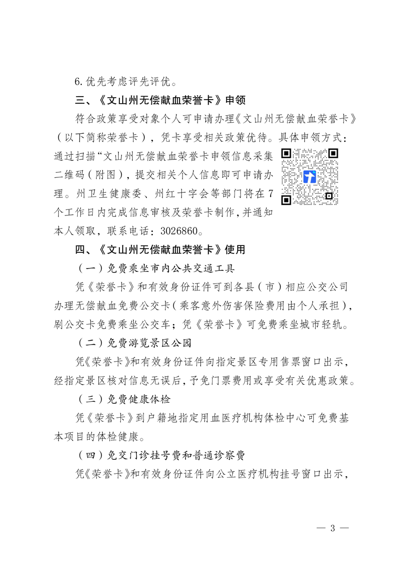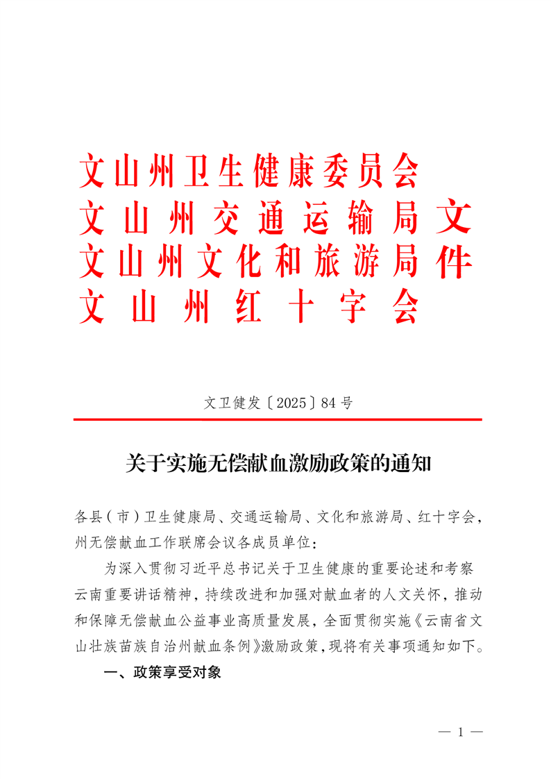 文山州卫生健康委员会关于实施无偿献血激励政策的通知