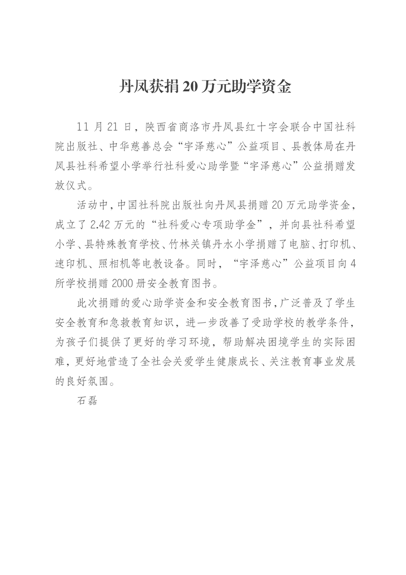 丹凤获捐20万元助学资金