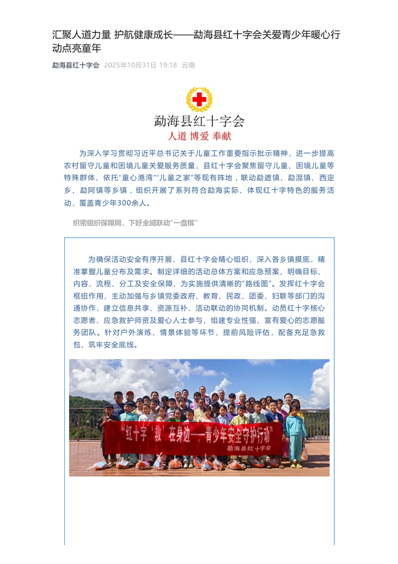 汇聚人道力量 护航健康成长——勐海县红十字会关爱青少年暖心行动点亮童年
