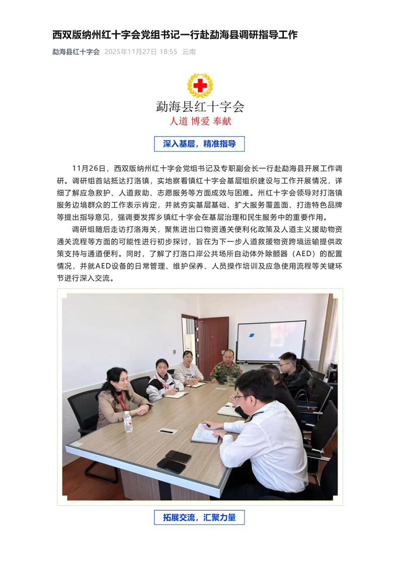 西双版纳州红十字会党组书记一行赴勐海县调研指导工作