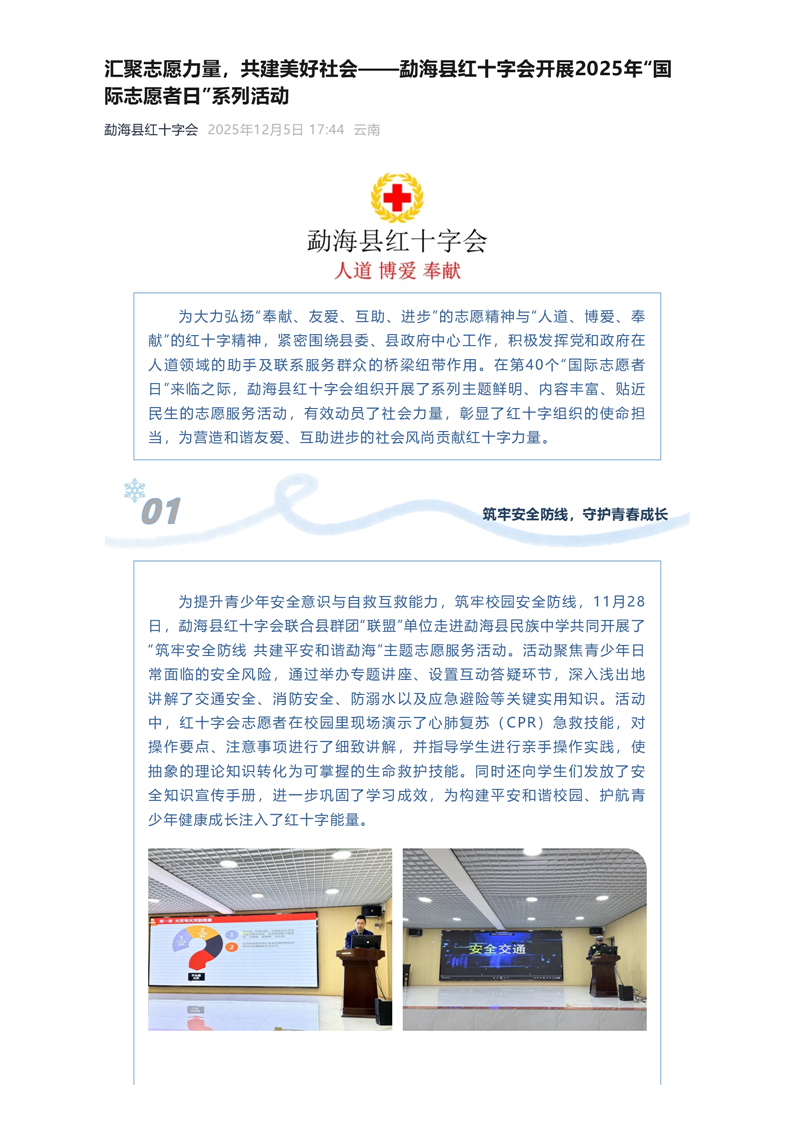 汇聚志愿力量,共建美好社会——勐海县红十字会开展2025年“国际志愿者日”系列活动