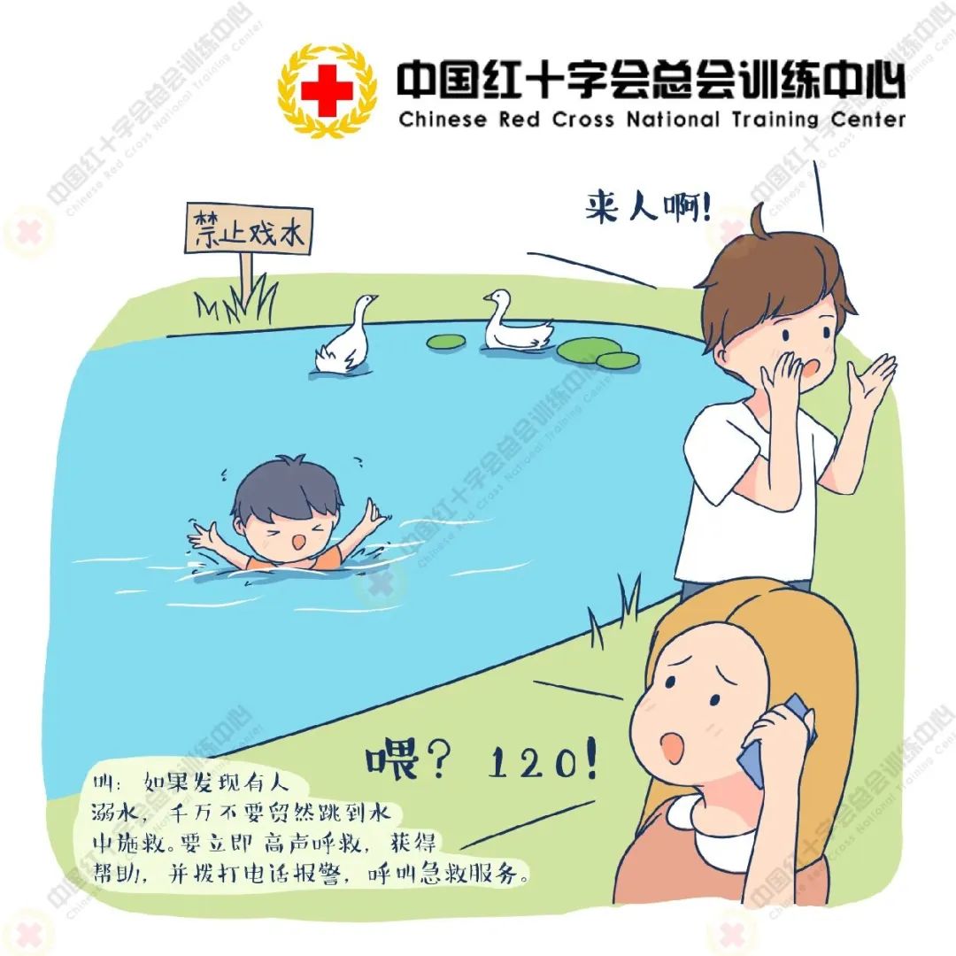 如果发现有人溺水,千万不要贸然跳到水中施救。要立即高声呼救,获得帮助,并拨打电话报警,呼叫120。