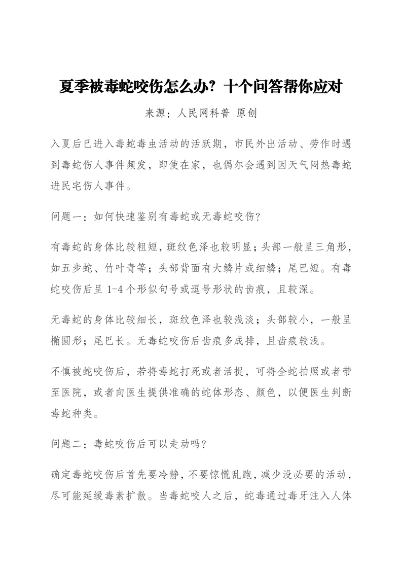 夏季被毒蛇咬伤怎么办?十个问答帮你应对